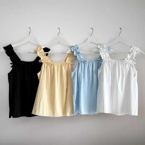 |CST9584|여성 리본 장식 프릴 밴딩 셔링 A라인 나시 탑 노란색 하늘색