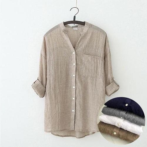 [다잇템][다잇템] 여자 단가라 린넨남방 반소매 썸머 카라넥 하늘 셔츠_17121752_588872