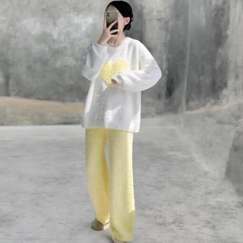 [옷자락] 여성 사랑스러운 하트 퍼 따뜻한 루즈핏 잠옷 세트