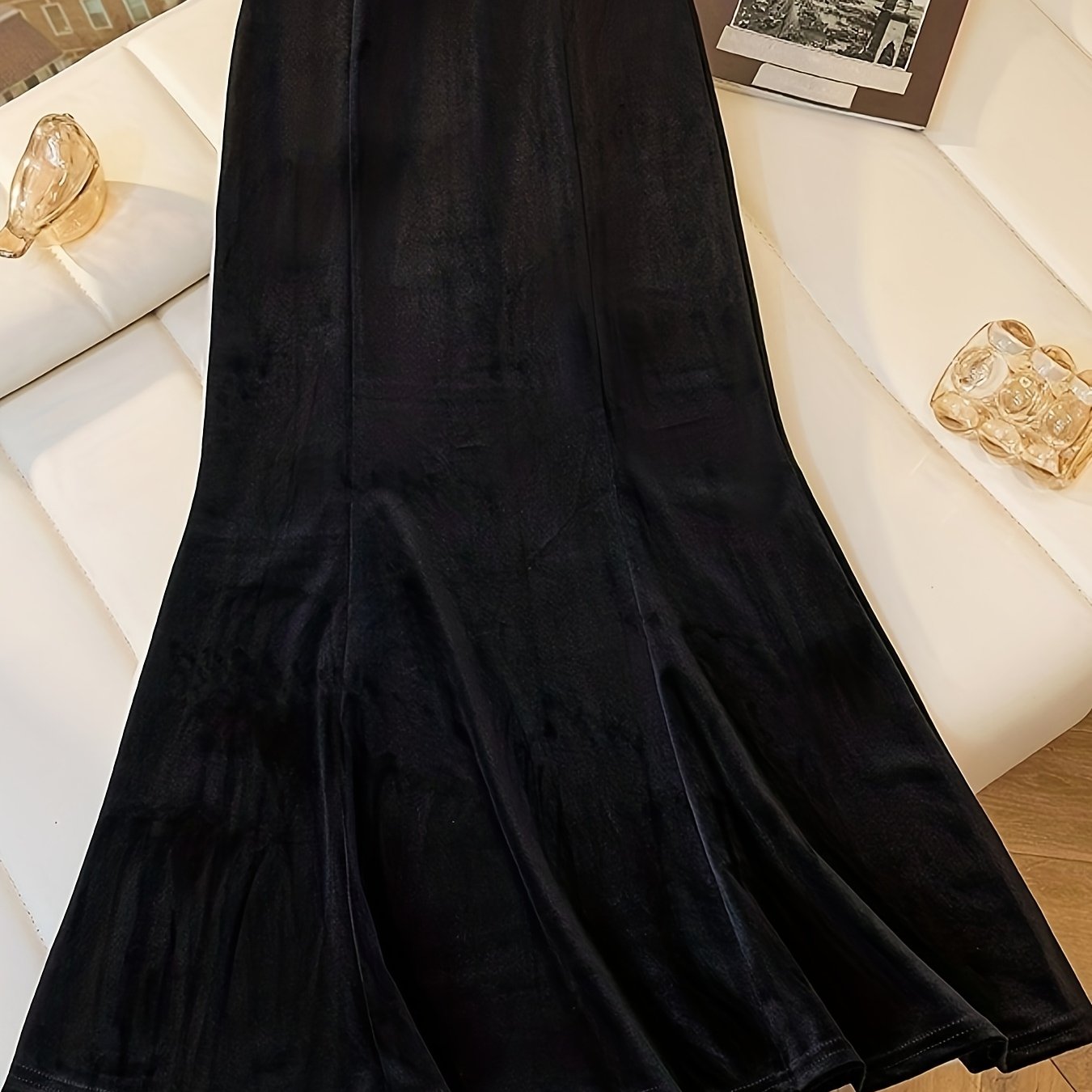 TEMU 세련된 느낌의 하이웨이스트 벨벳 A라인 스커트, 바디콘 인어 디자인 특징.