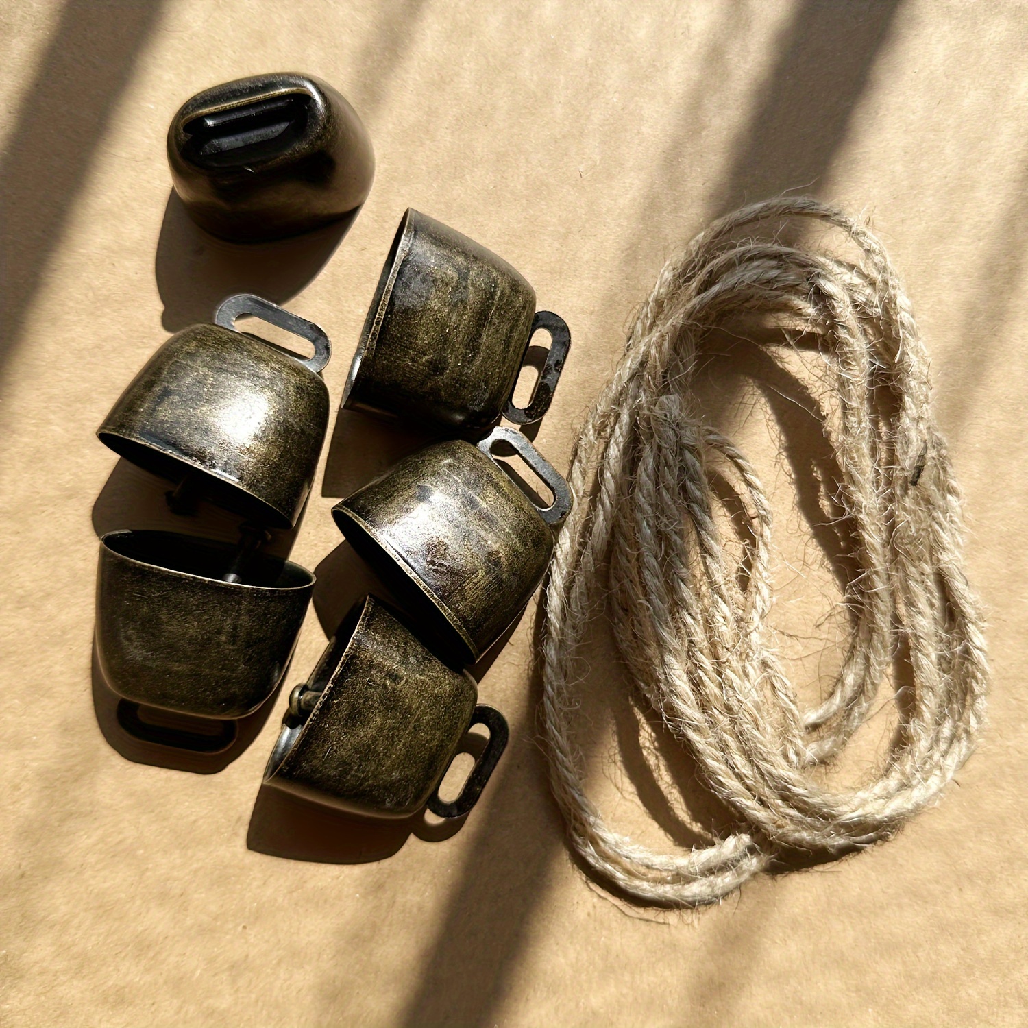TEMU 6개의 캐스트 아이언 슬레이 벨 세트, 70.87인치 헵 로프 포함, DIY에 적합, 2가지 사용 방법, 계절 장식에 적합, 크리스마스, 부활절, 추수 감사절, 할로윈에 다용도로 사용 가능 - 농촌 휴일, 애완 동물 및 가축 벨