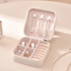 사각 휴대용 주얼리 목걸이 반지 보석함, 아이보리, 1개