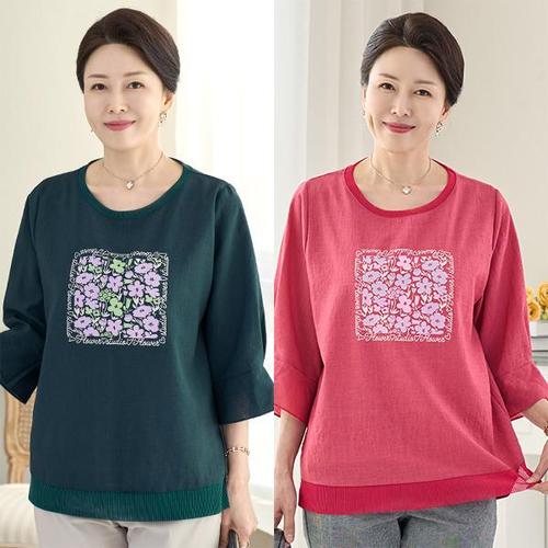 [모슬린]엄마옷 스티치 배색 블라우스 BL515355 마담중년여성빅사이즈50대60대70대할머니옷여자