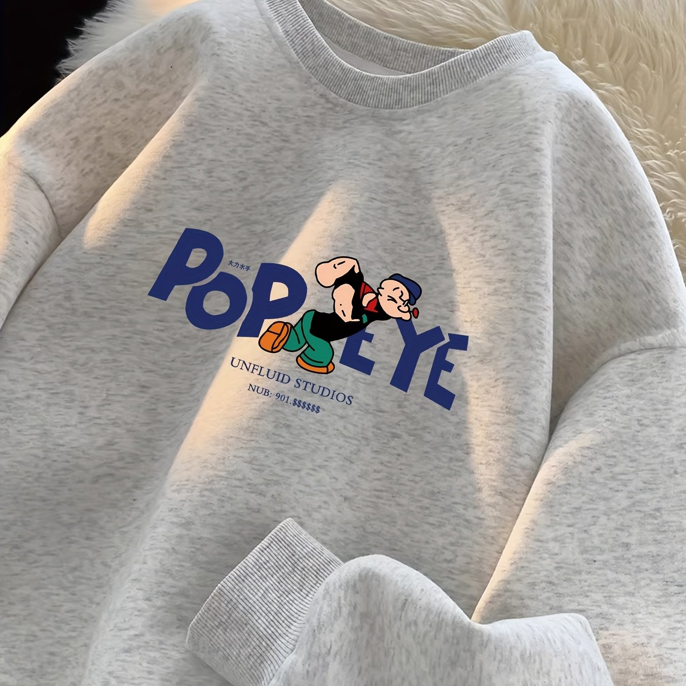TEMU 2025년 신상 남아용 스타일리시 긴팔 크루넥 티셔츠, "POPEYE" 그래픽 프린트, 캐주얼 봄/가을 상의, 레귤러 핏 니트 풀오버, 키즈용, 중간 정도 신축성 원단, 라운드넥 디자인, 가을 의류 | 발랄한 그래픽 티 | 편안한 핏 셔츠