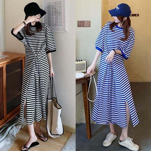 [모노무드]모노무드 BSRC-5107 여름 바캉스룩 허리밴딩 루즈핏 허리 롱원피스 빅사이