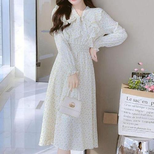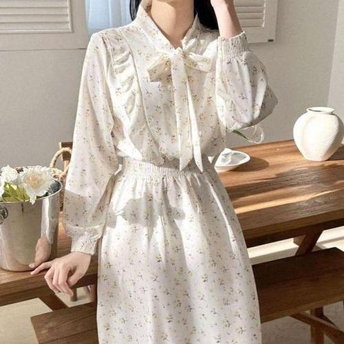 [셀러허브_여성트랜드패션]ONM 쉬폰 롱 블라우스 잔꽃 꽃무늬 긴팔 스모크원피스