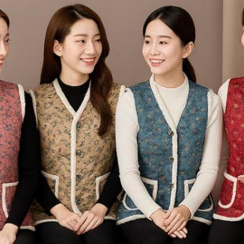 [셀러허브_여성트랜드패션]ONM 겨울 할머니 양털 김장 꽃무늬 촌강스 기모 조끼