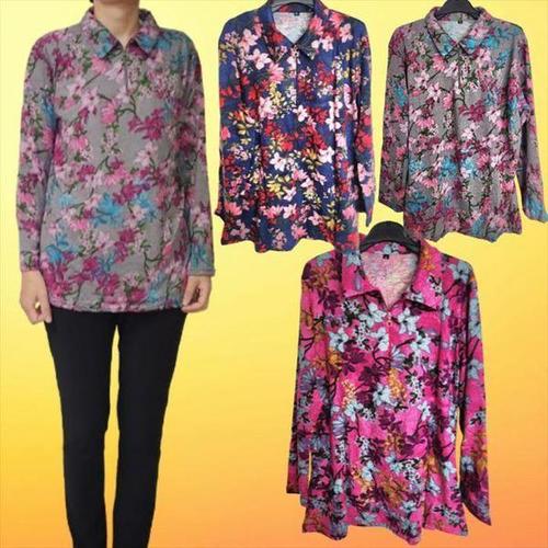 [셀러허브_여성트랜드패션]ONM 할머니 중년 여성 꽃 기모 지퍼 카라티 봄 가을