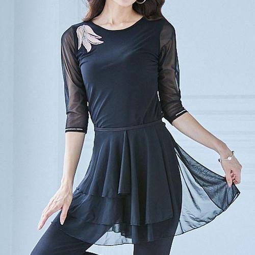 [셀러허브_여성트랜드패션]어깨 꽃 블라우스 라인댄스복 차밍 줌바 스포츠댄스복