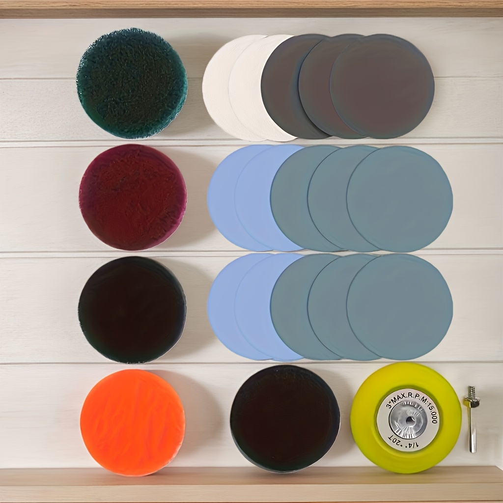 TEMU 38개 세트 7.62cm 버핑 폴리싱 패드, 자동차 폼 드릴 폴리싱 패드 키트 스펀지 패드 헤드라이트 복원 키트 플리스 패드 포함