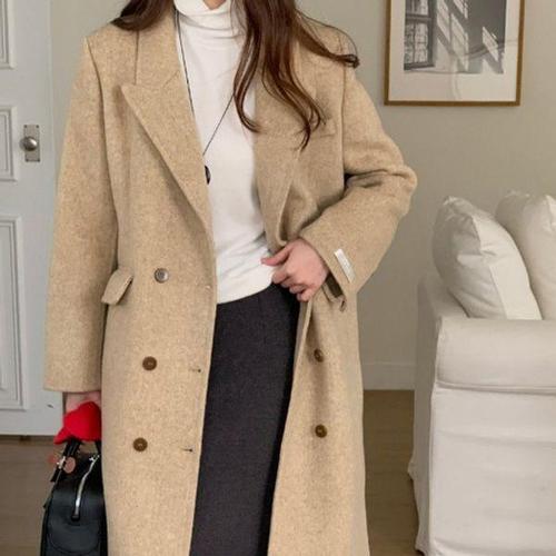 [셀러허브_여성트랜드패션]무배 핸드메이드 모직 헤링본 롱 울 코트 워너비뮤즈