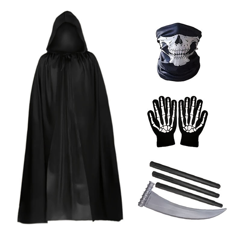 TEMU 할로윈 그림 페이퍼 코스튬 - 검은 망토와 빨간 눈 & 뼈 손, 성인용 악마 마법사 파티 의상, 무대 공연 복장, 할로윈 코스튬, 테마 이벤트 액세서리, 드라마틱한 소품