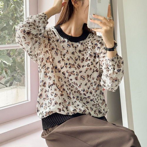 [데일리스트]호피 라운드넥 블라우스_2MRNNSVM5126