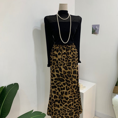 [옷자락]여자 어텀 레오파드 FW 소프트핏 호피 고무줄 롱스커트