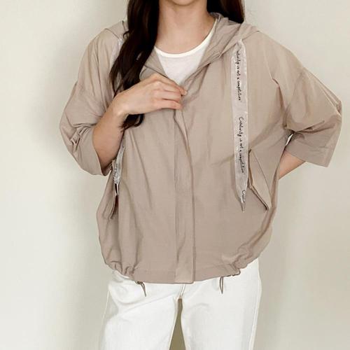[옷자락] 여자 오버핏 나일론 집업 후드 스트링 여름 흰 자켓