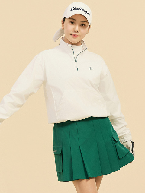 [챌린저] 여성 에센셜 반집업 하이넥 윈드브레이커 우븐탑 화이트