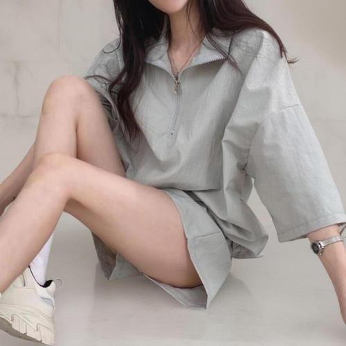 [옷자락] 여성 단색 캐주얼 오버사이즈 후드 반바지 세트