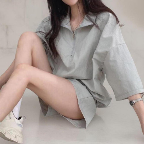 [셀러허브_여성트랜드패션]Rly 여성 반바지 세트 후드 바람막이 오버핏 고프코어