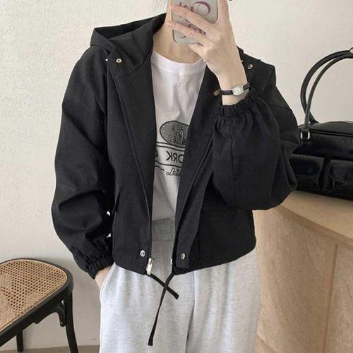 [에이치플러스몰]베이직 후드 숏점퍼 플랩포켓 밑단스트링 체형커버