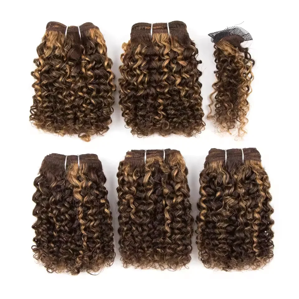 제리 컬리 인모 헤어 번들 브라질 킨키 컬 5피스 P4/27 하이라이트 인모 헤어 위브 번들 레미 헤어 익스텐션