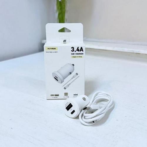 차량용 충전기(C타입 케이블포함) 3.4A 2포트 (3xSiO)