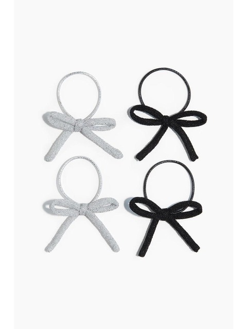 [에이치엔엠] 리본 디테일 머리끈 4피스 세트 실버 컬러/블랙 1304145002