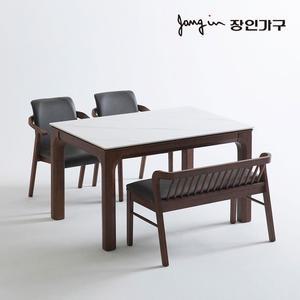 장인가구 해롤드 포세린 세라믹 다이닝 사각 4인 1400 식탁 테이블 세트+의자 2개+벤치