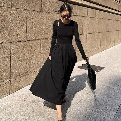[셀러허브_여성트랜드패션]ONM 여성 원피스 페이크 2중 펀칭 A라인 원피스