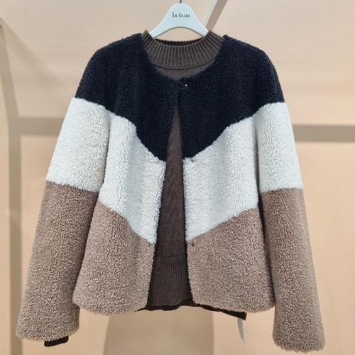 [라티움]Destijl HC34 25Fw 양털뽀글이 3단배색 노카라 짧은자켓 D2554jk05 (43282140)