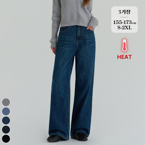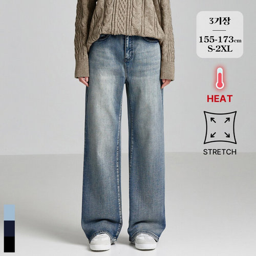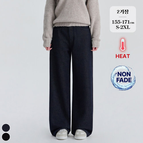 포레스트핏 / (겨울찐스판2탄) 발열원단 기모 밴딩 와이드 데님 팬츠 3기장/3컬러