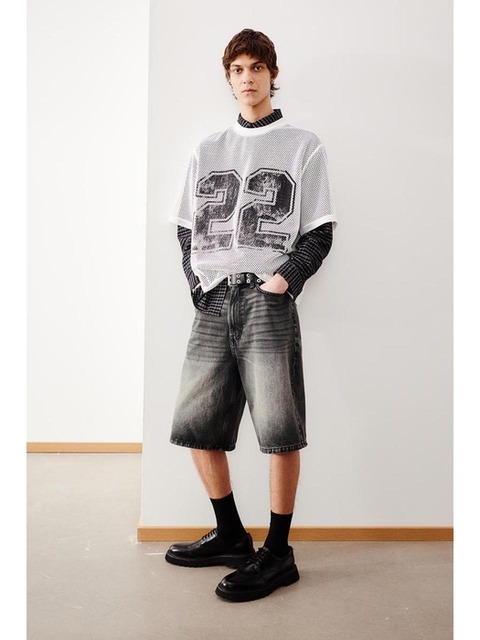 [에이치엔엠] 데님 배기 쇼츠 다크 데님 그레이 1260179001