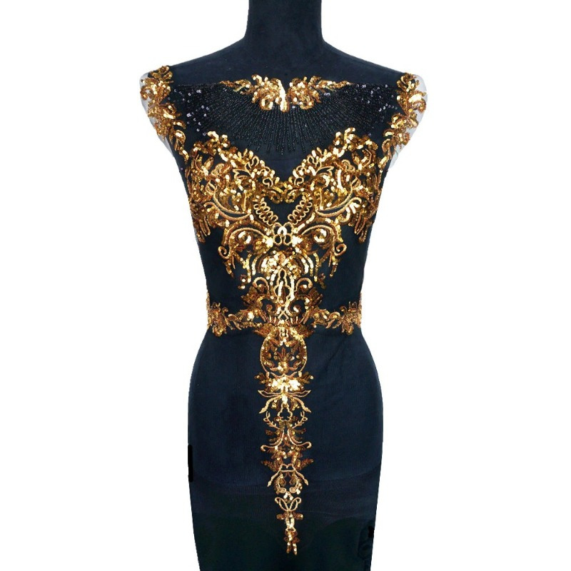 TEMU 1세트 블랙 튤 세퀸 자수 레이스 패브릭 술 고급 로열 웨딩 가운 아플리케 패치 칼라 드레스 DIY