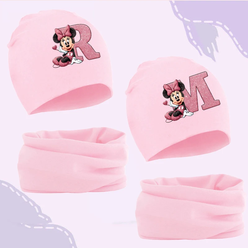 2개 세트 디즈니 미키 마우스 여자 아기 모자 스카프 애니메이션 미니 Y2K 어린이 가을 겨울 따뜻하고 편안한 하라주쿠 비니 니트 캡 칼라