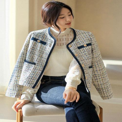 CLOREX 여성 트위드 자켓 버튼 캐주얼 트위드 자켓