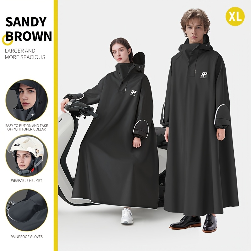TEMU 남녀공용 방수 - 성인용 롱 스타일, 방수, 방풍, 블랙, 풀 커버리지, 후드 디자인, 모터사이클, 야외 활동 및 일상 사용에 적합, 방수 레인 포ンチョ.