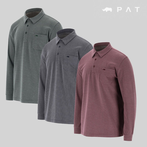 [피에이티]남성 자카드 패턴 포켓 카라 긴팔 티셔츠 1K55131