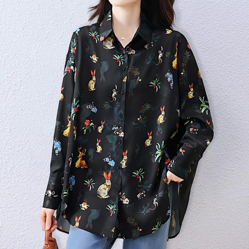 TEMU 여성 봄여름 캐주얼 얇은 셔츠 아우터 루즈핏 리본 장식 꽃무늬 긴팔 상의 데일리 캐주얼 얇은 리본 프린트 긴팔 셔츠 카디건 톱 남방 봄블라우스 슬림소녀 SLIM GIRL