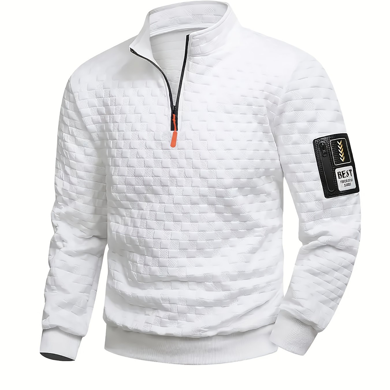 TEMU 남성용 경량 폴리에스터 지퍼업 후드티, 체크 무늬 & 스탠드 칼라 - 봄/가을 캐주얼 풀오버, 레귤러 핏, 긴소매, 앞면 포켓, 흰색 바탕에 검은색 포인트, 봄 아우터, 모던 캐주얼웨어, 튼튼한 원단