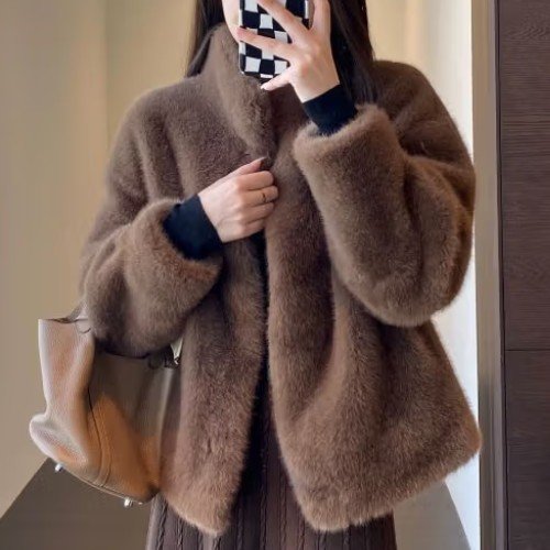 [후스타일]후스타일 여성 천연 양모 와이드카라 퍼 자켓 카멜