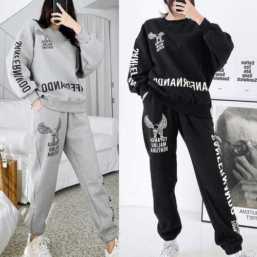 TEMU 여성 캐주얼 회색 플리스 패션 의상, 투피스 세트.