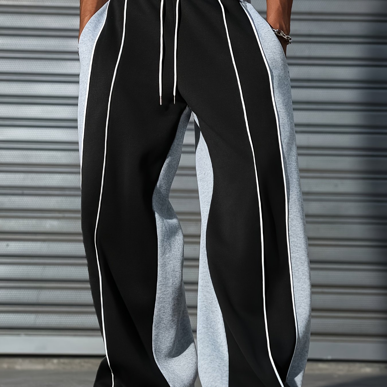 TEMU 남성 캐주얼 조거 팬츠 - 와이드 레그 컬러 블록 디자인, 조절 가능한 드로스트링 허리 & 커프스, 신축성 없는 원단, 러닝, 헬스, 야외 활동을 위한 레귤러 핏 - 스트리트웨어 스타일, 조깅 팬츠, 헬스복, 스트리트웨어 패션, 편안한 착용감|헬스복