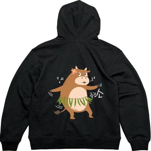 기모후드집업 뒷면 춤추는 즐겁 소 COW그림 다양한색상 전사이즈 WFKMHQ4
