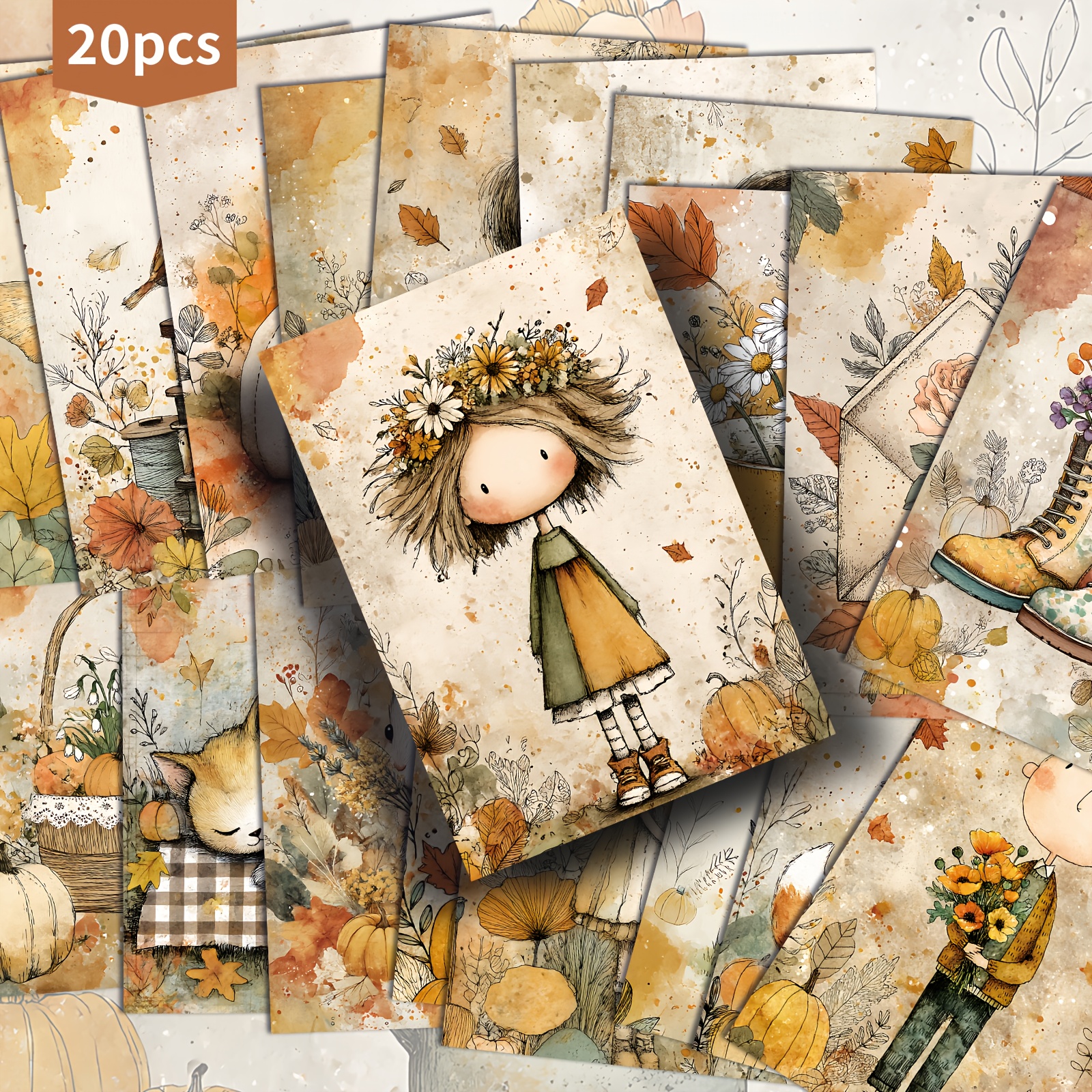 TEMU 20팩 ASSTSS 빈티지 가을 꽃 소녀 엽서 - 4x6인치 클래식 핀업 일러스트레이션, 수집용 장식 그림 카드, 꽃과 호박이 있는 귀여운 소녀를 특징으로 하는 스크랩북 및 공예용, 기념일 선물 및 창의적인 프로젝트에 완벽한 아트 포스트카드, 상세한 삽화