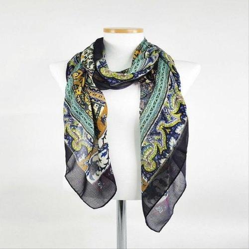TEMU 여성용 우아한 파이즐 스카프 - 골드 & 블랙 패턴, 가벼움, 통기성, 캐주얼한 의상에 적합한 세련된 목장, 캐주얼한 의상 액세서리|우아한 목장|장식 목장, 스카프