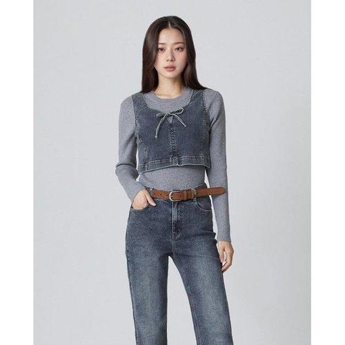 갤러리아_LAP (SET-상의)앞 리본 데님 뷔스티에 블라우스 AR3DB870