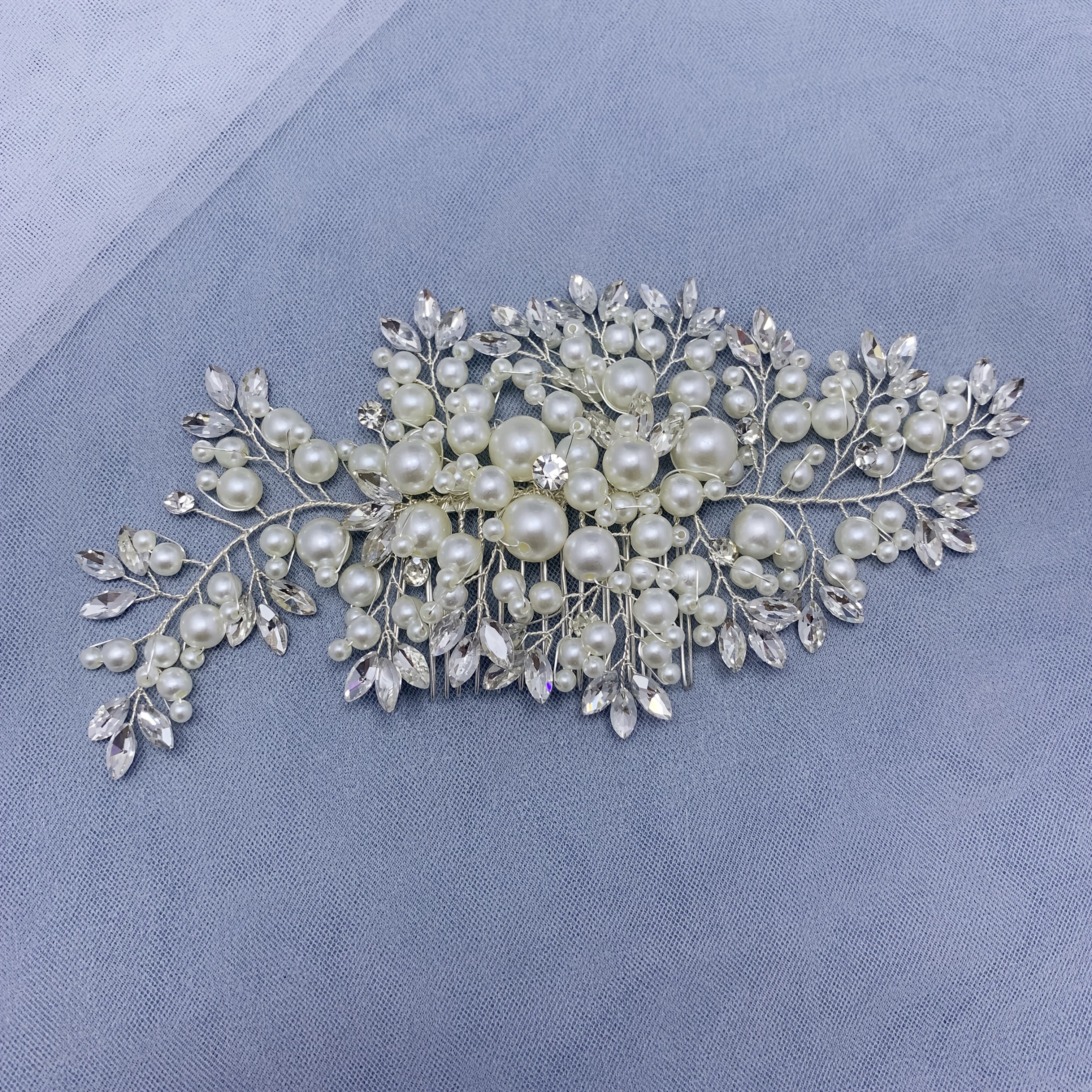 TEMU 럭셔리 핸드메이드 플로럴 헤어 콤 헤어밴드 - 우아한 웨딩 헤어 액세서리, 파티 및 포토샷용 여성 정장 헤어피스, 내구성 강화 & 착용 편리한 신부 헤어 스타일링, 섬세한 공예