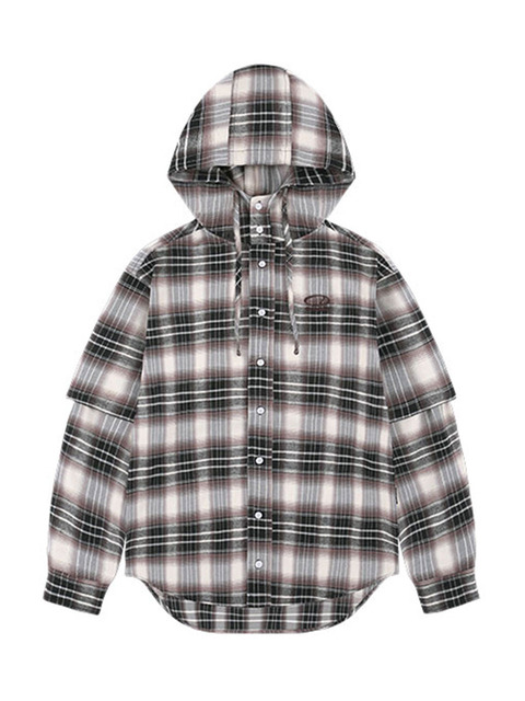 [오드스튜디오] ODSD 오버핏 후드 레이어드 체크 셔츠 - RED
