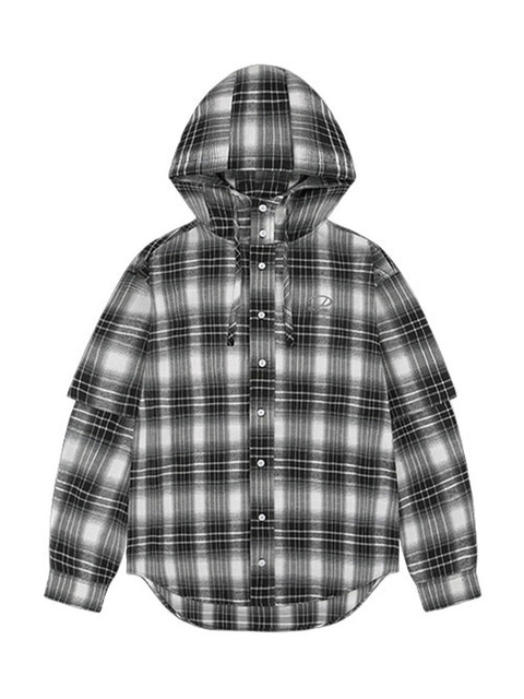 [오드스튜디오] ODSD 오버핏 후드 레이어드 체크 셔츠 - BLACK