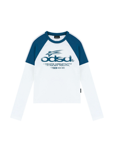 매장정품 오드스튜디오 ODDSTUDIO ODSD 래글런 트랙 세미 크롭 티셔츠 - WHITE BLUE OO4FFRT101WB 126138