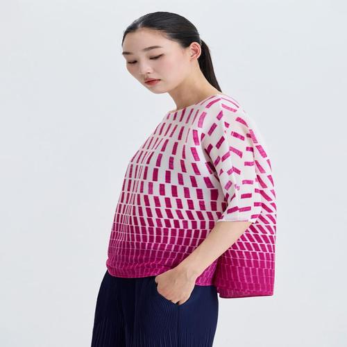 [플리츠미][플리츠미] 그라데이션 컬러 블럭 5부 티셔츠_PPTSM025017